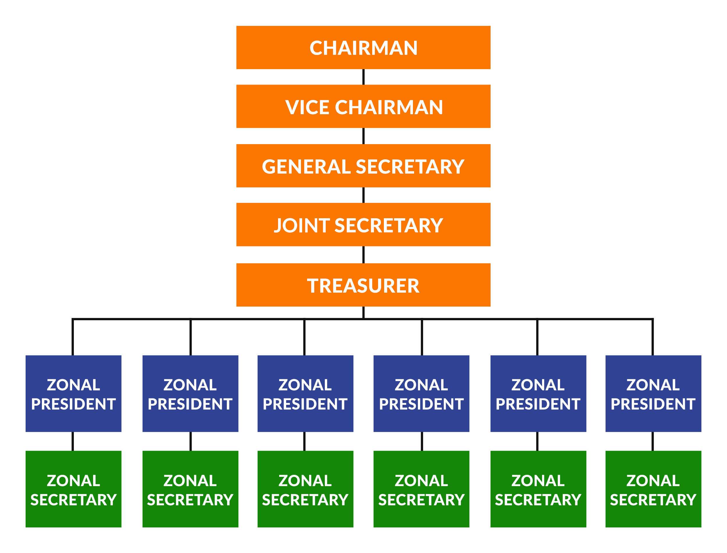 The management and the affairs of the Association including its funds and properties shall be vested in elected or nominated office bearers, consisting of (1) One Chairman (2) One Vice-Chairman (3) Six Zonal Presidents (4) One General Secretary (5) One Joint Secretary (6) Six Zonal Secretaries and (7) One Treasurer. The above seventeen (17) office bearers are nominated or elected by the Executive Committee from among the nominated or elected Executive members.